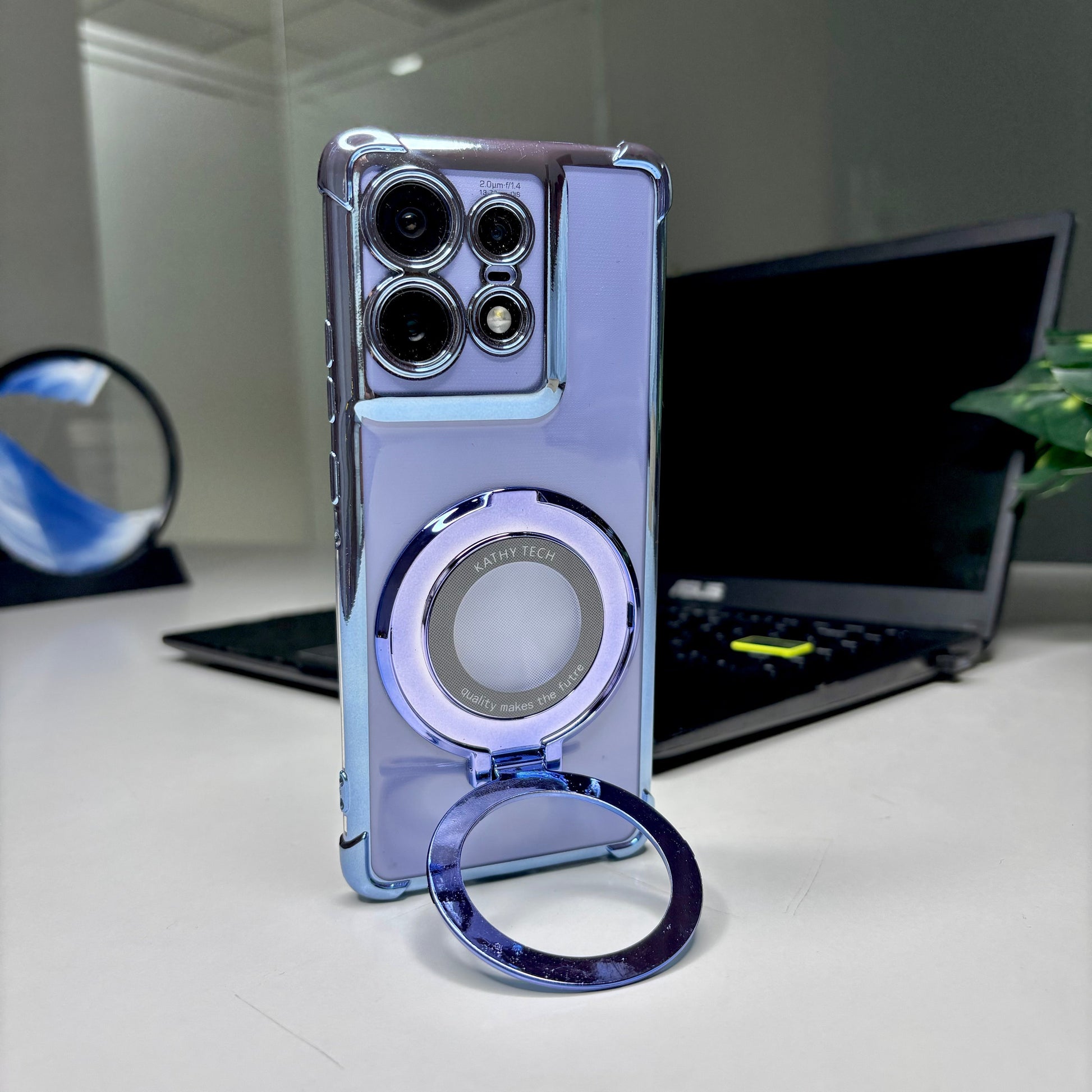 Sleek. Functional. Protective. This transparent case with a sturdy built-in non-rotating magnetic stand is perfect for hands-free viewing and magnetic mount support—without compromising on your phone’s style.